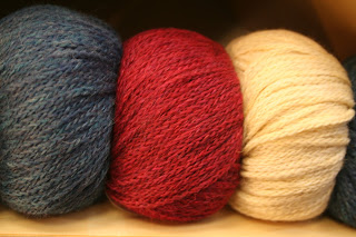 Which brings me to the morals of this story (there are two - there was only going to be one, but then the dust storm hit). The first is that it pays to look at things a little differently now and then, so we are moving yarns around in an effort to inspire and awaken your ideas about color. Our lines are being presented vertically when possible with an eye towards color groups and combinations. Silks, mohairs, merinos...they are all being presented to show the colorways off in their best light.